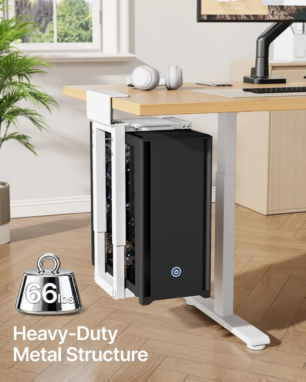 - Stable Heavy-Duty Support:Made from strong steel ,this under desk computer mount come with a high maximum load of 66 lbs without wobbling, ideal for heavier gaming CPUs as well as standard PC towers.Its solid, wrapping frame structure ensures your host remains stable even when the desk shakes, preventing costly repair fees caused by drops.
